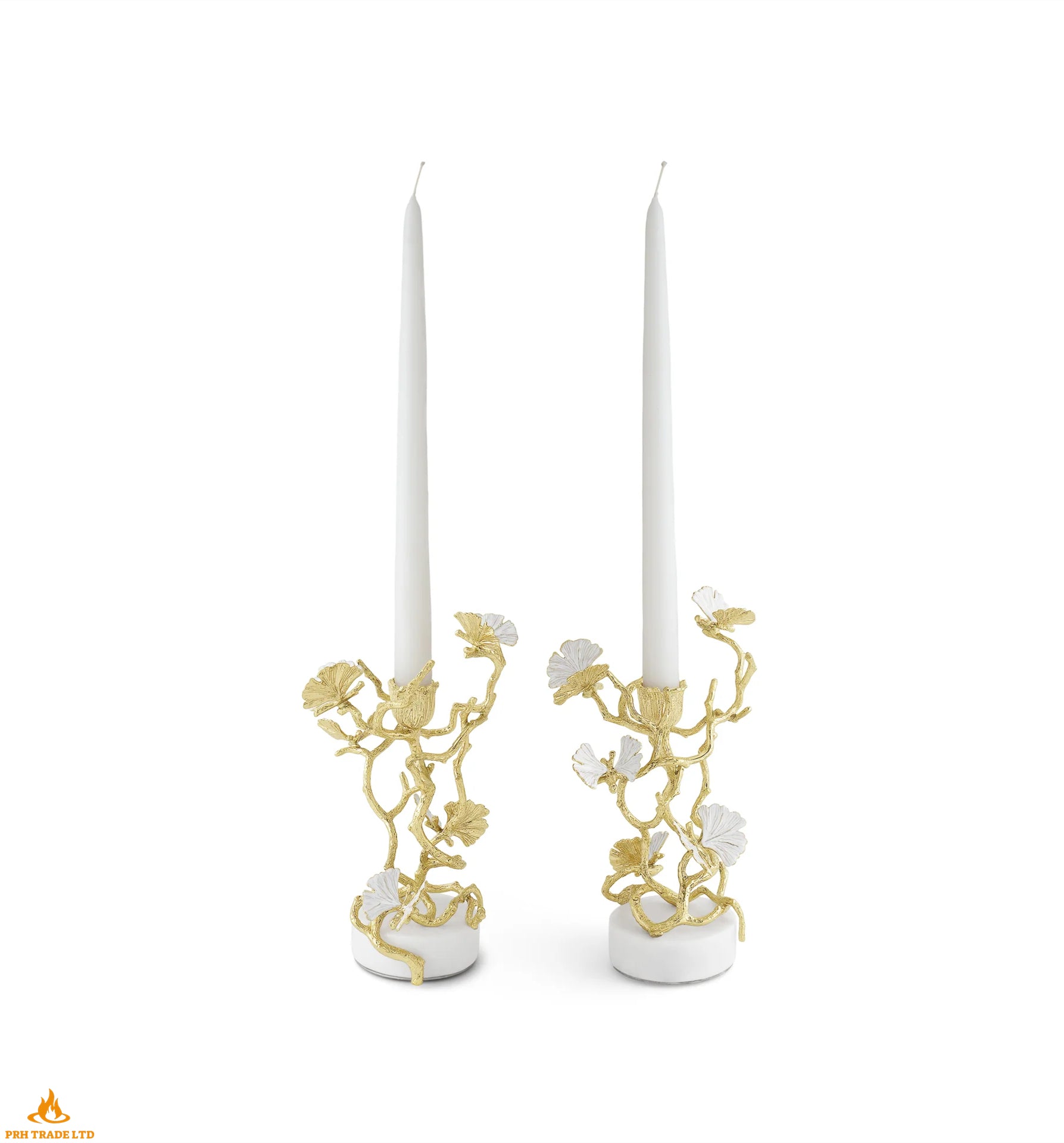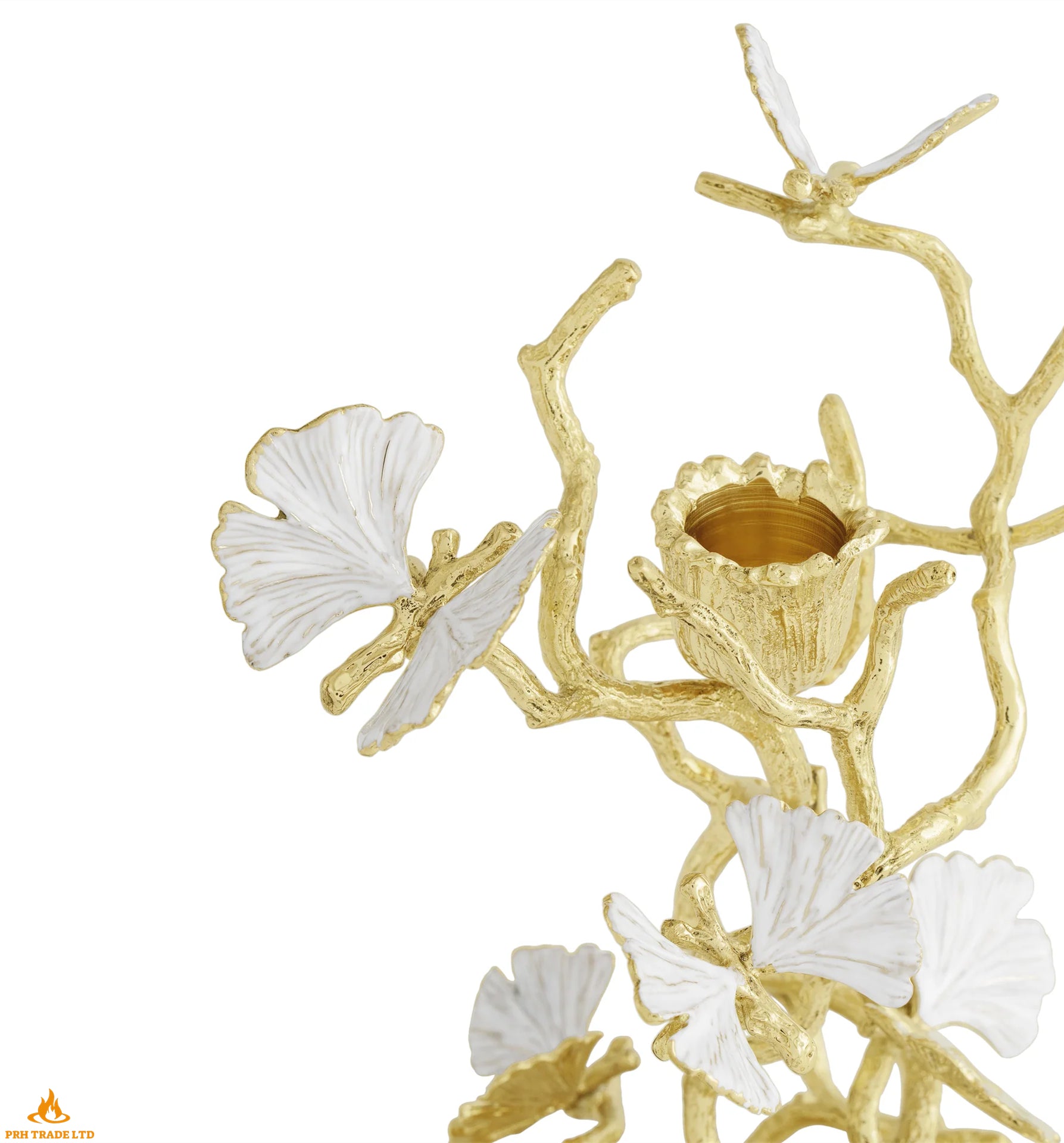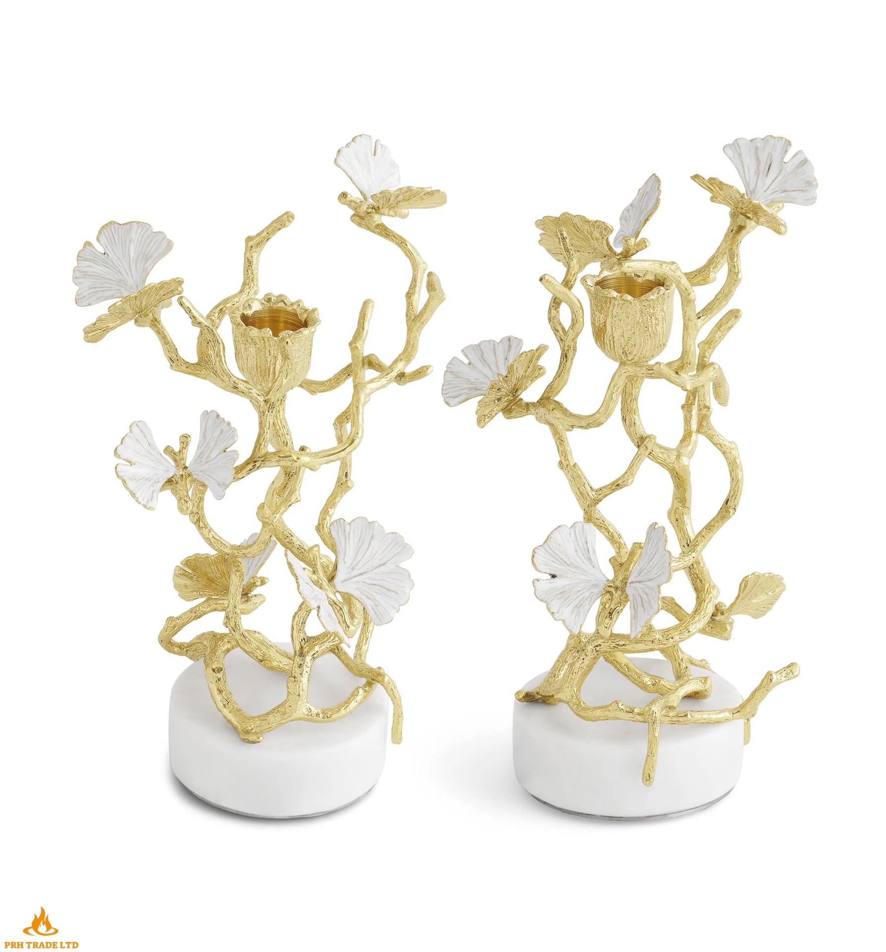 Midas Butterfly Ginkgo Gold Candlesticks (Pair of 2)