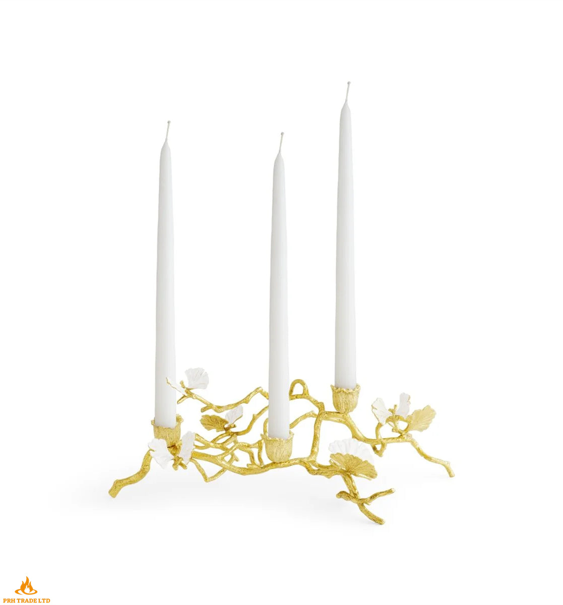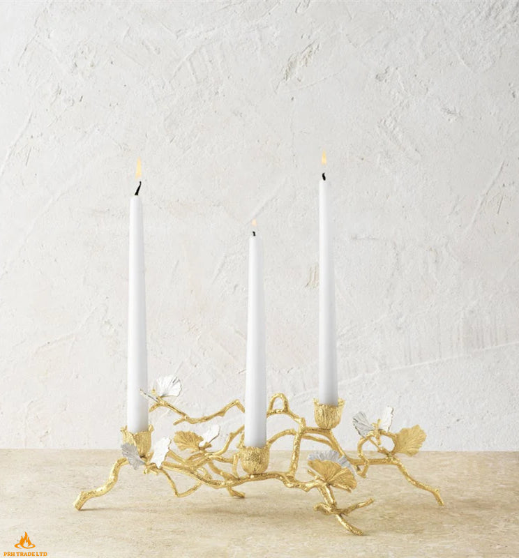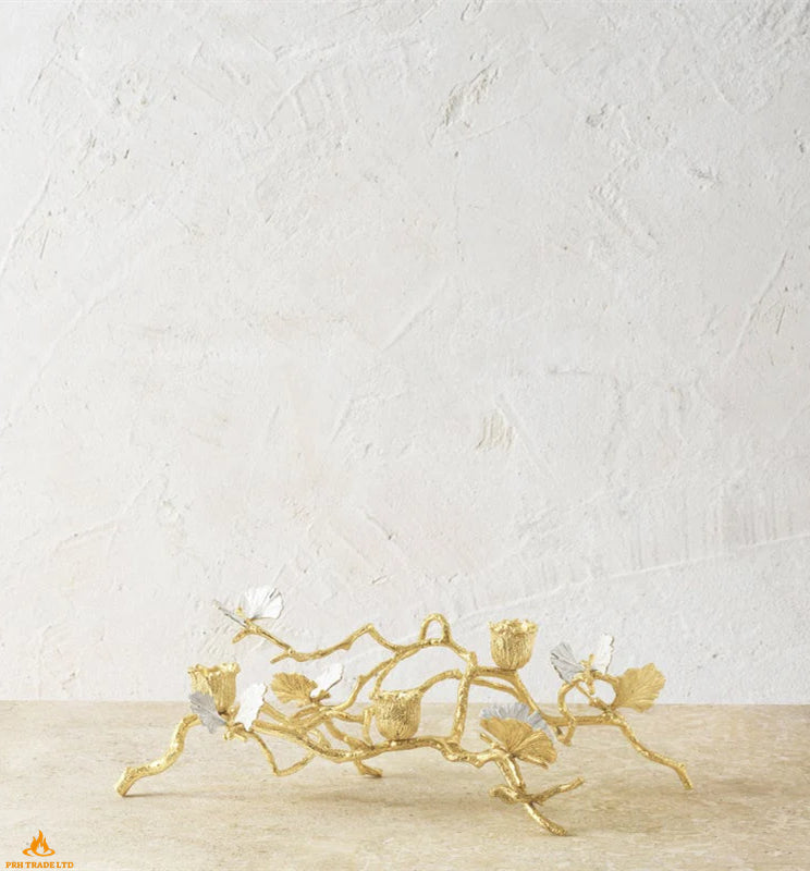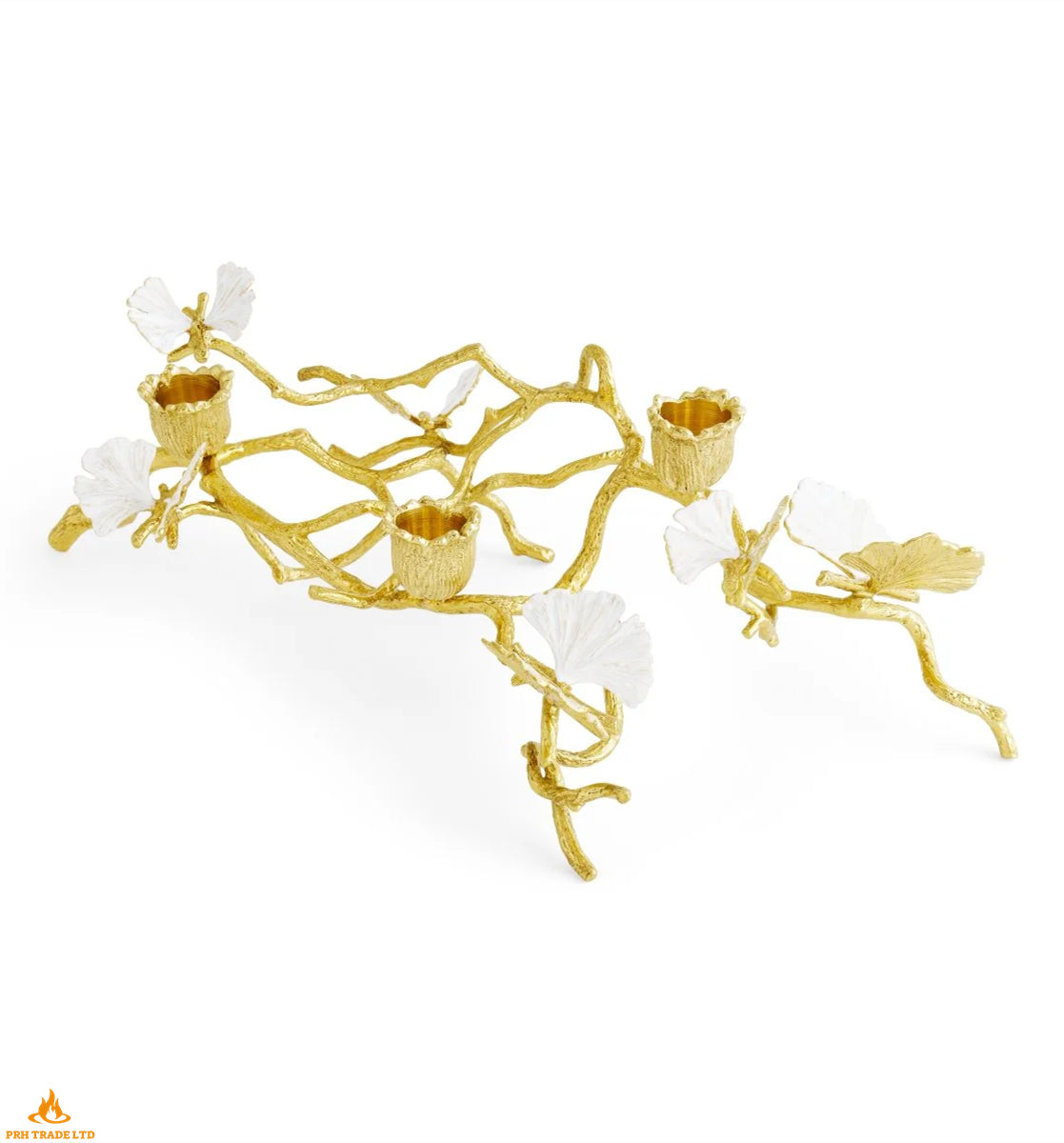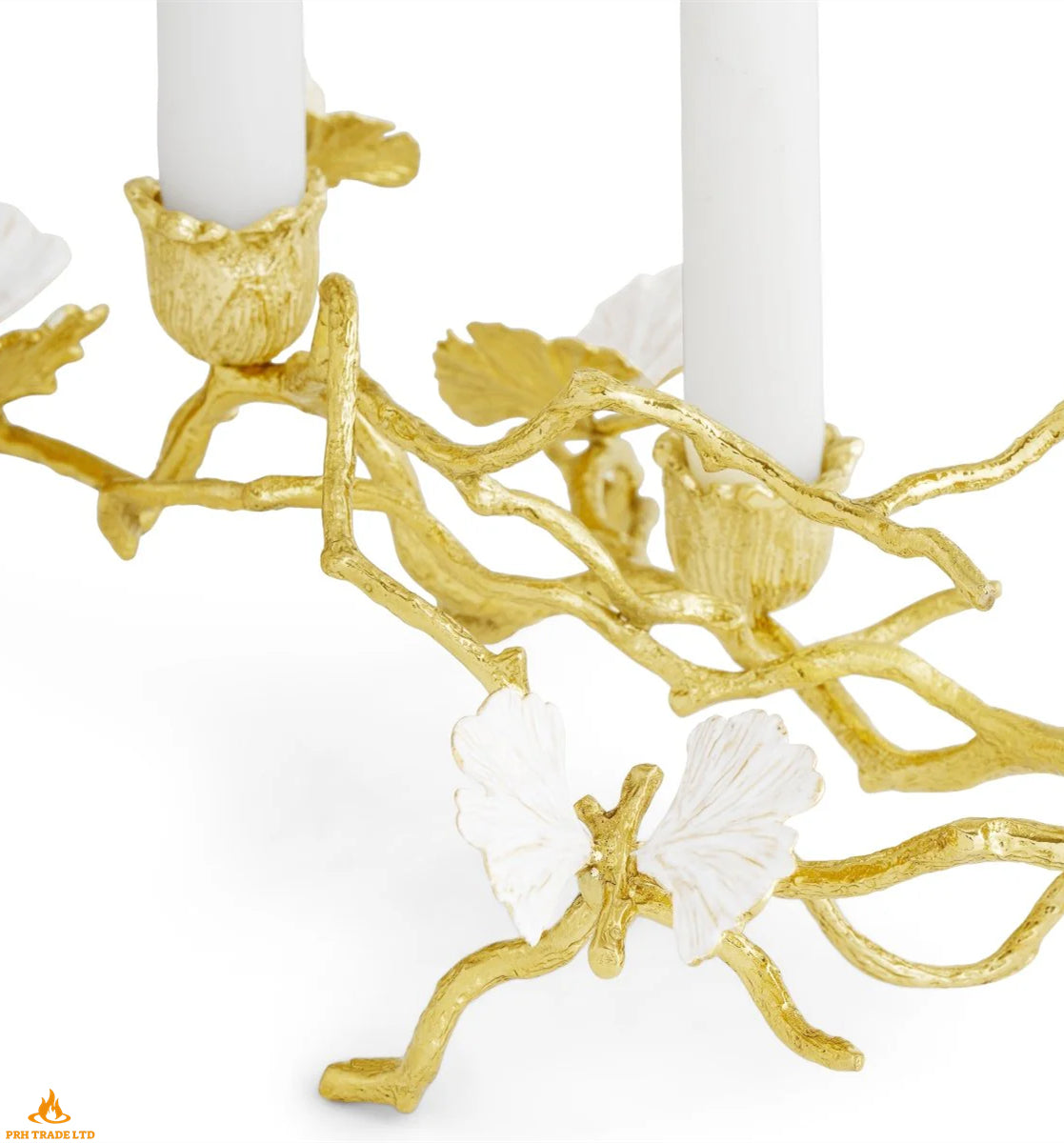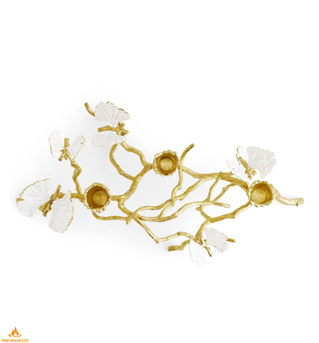 Midas Butterfly Ginkgo Gold Low Candlestick